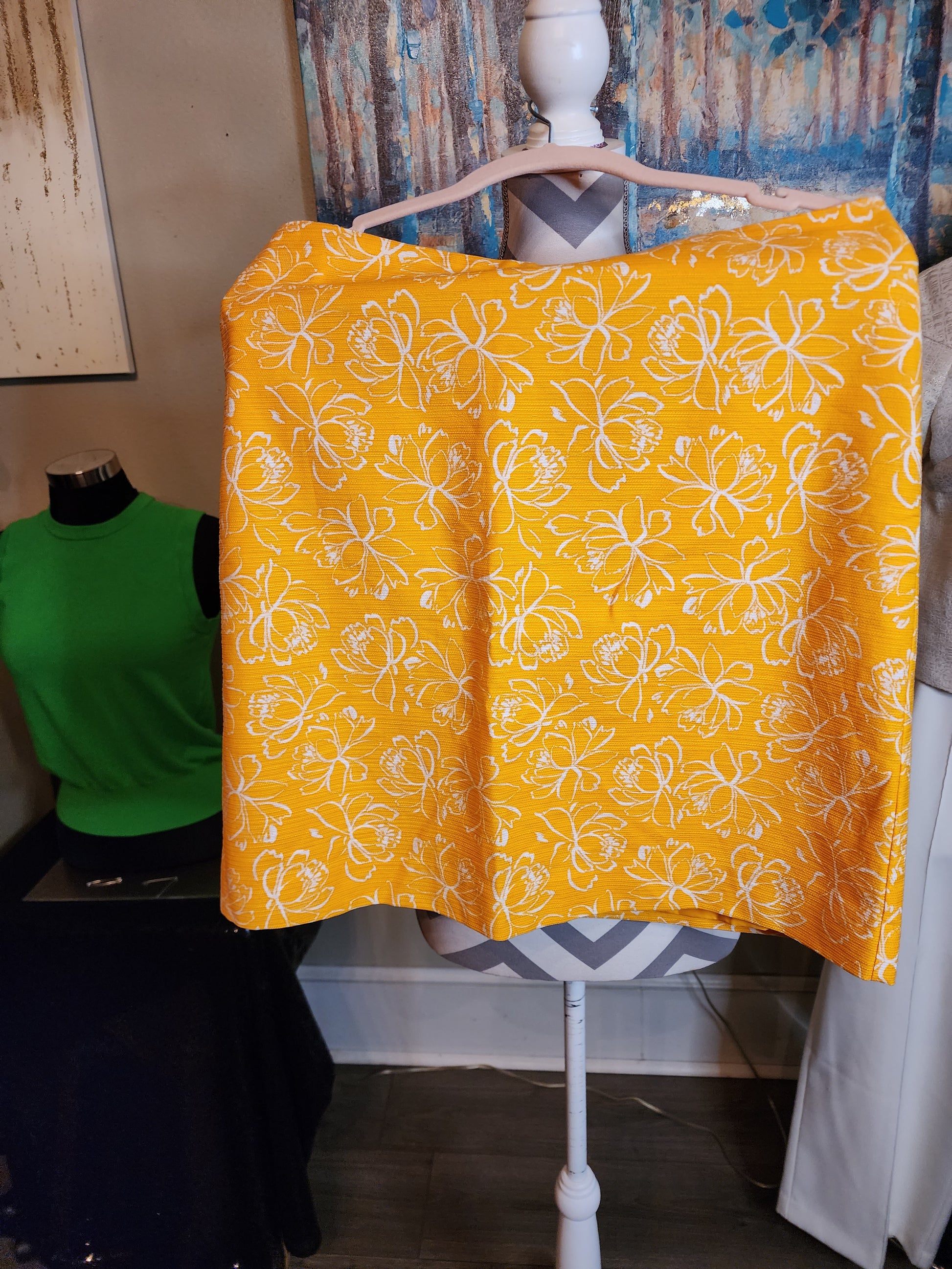 Ann Taylor Orange and White Floral Print Pencil Skirt