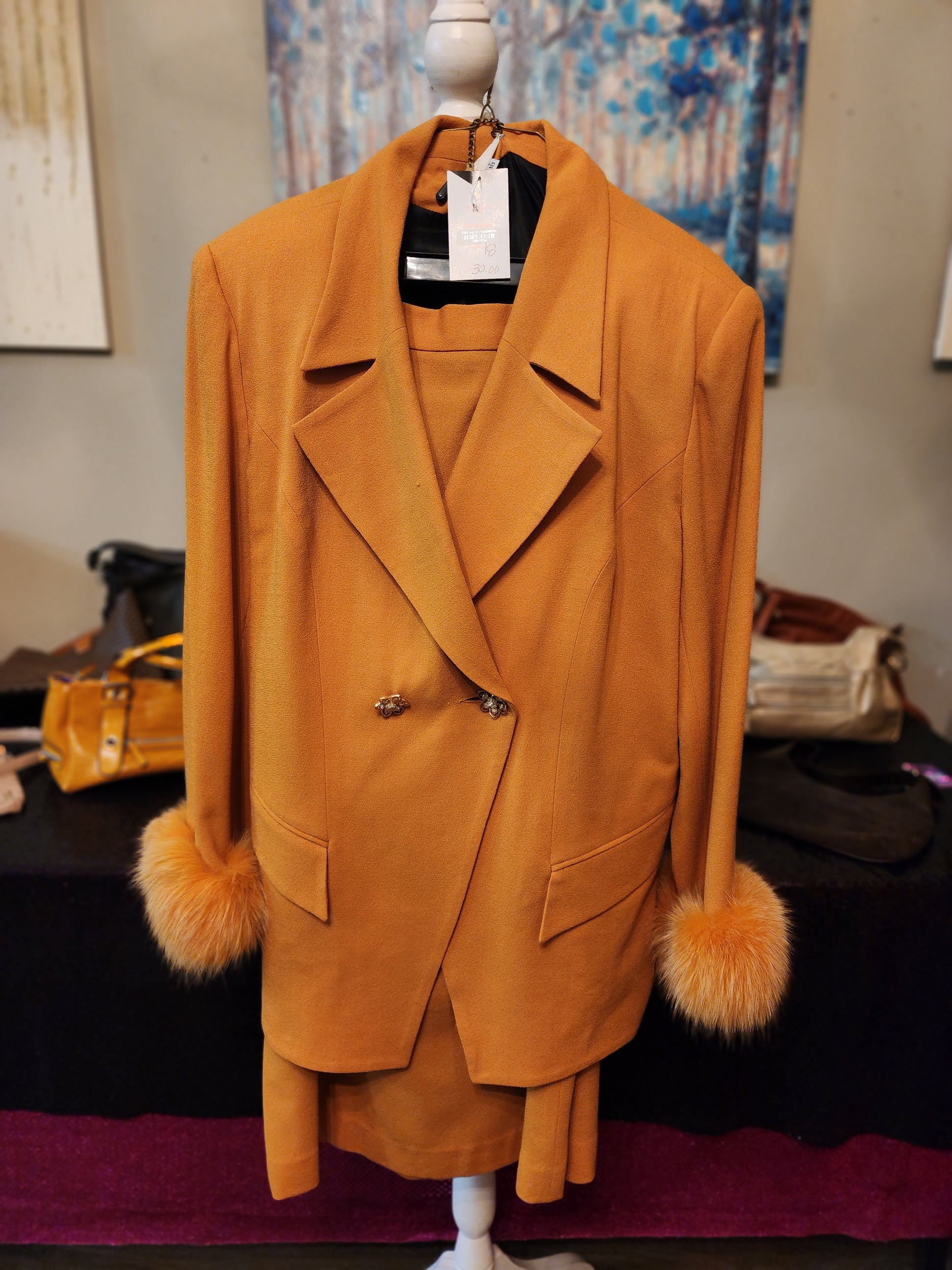 Lily & Taylor Mustard 2 Pcs Suit with Fur (Skirt)