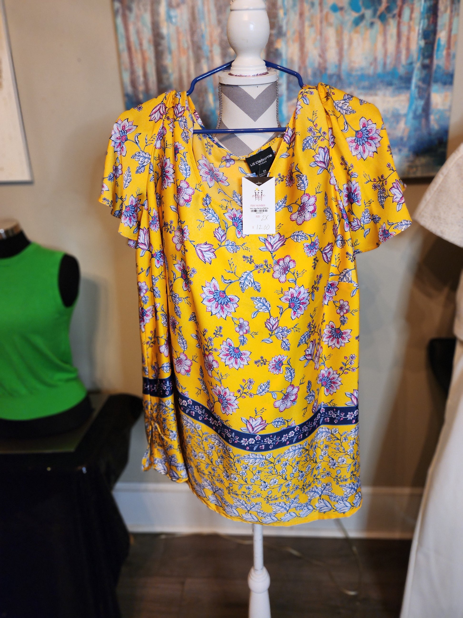 Liz Claiborne Woman Golden Rod Floral Print Blouse