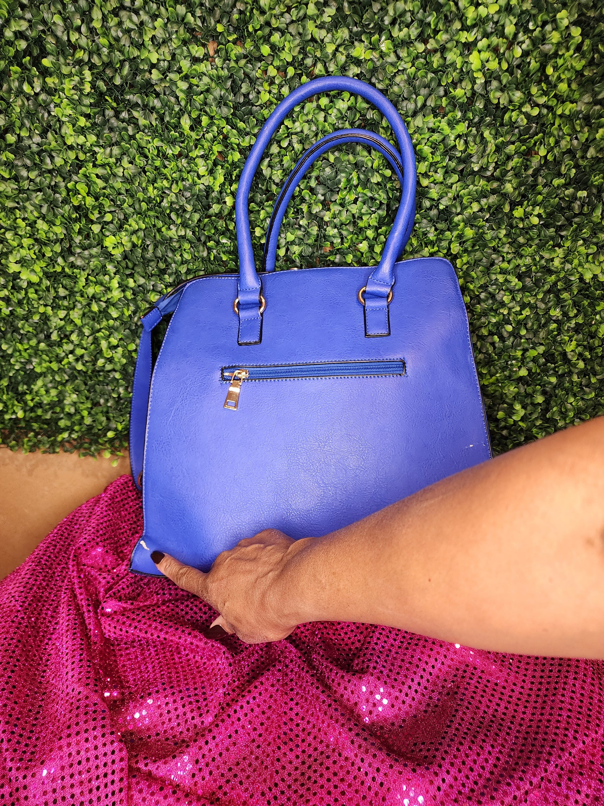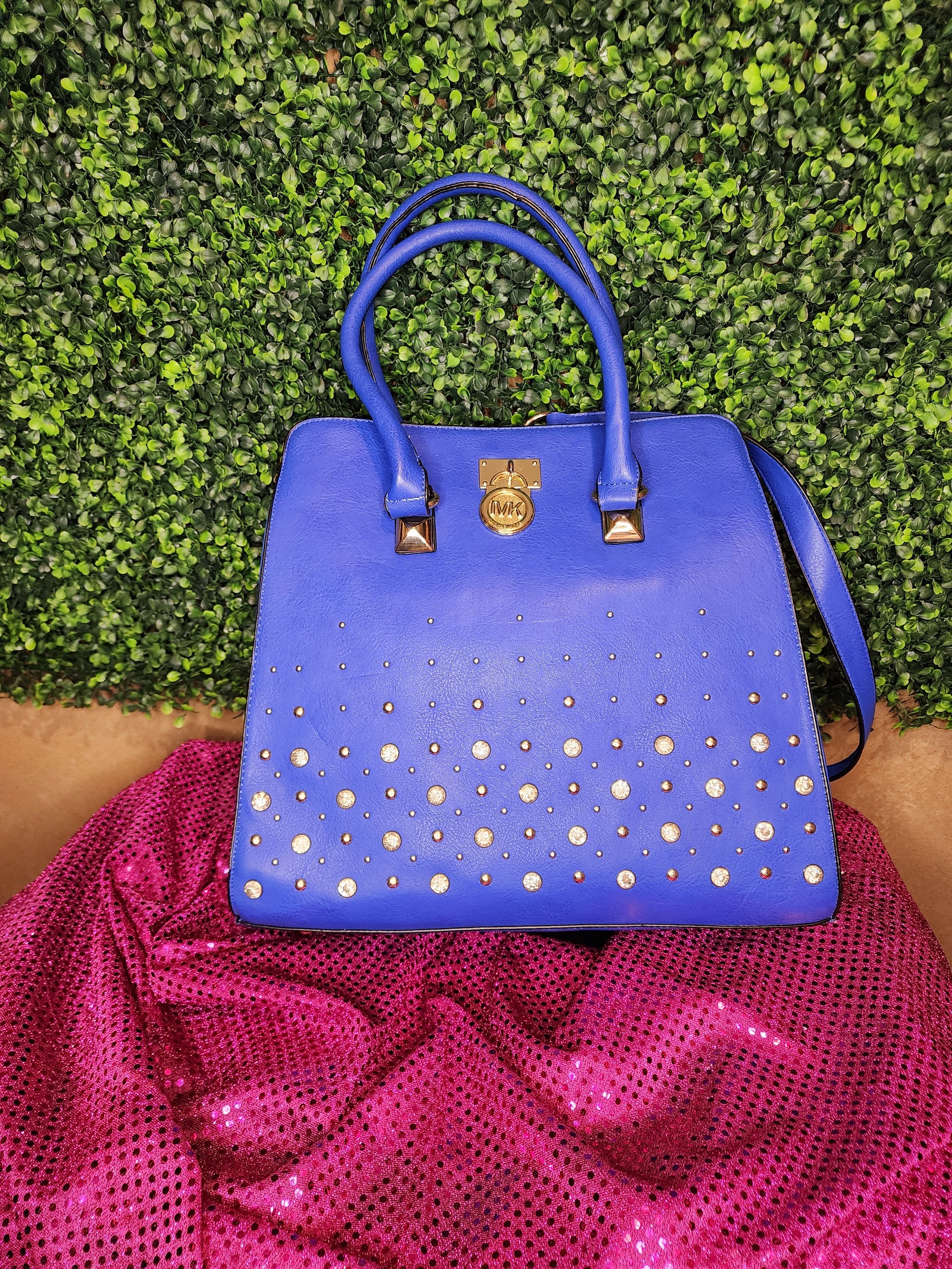 MK Royal Blue Studded Tote Bag with Gold Chain Strap