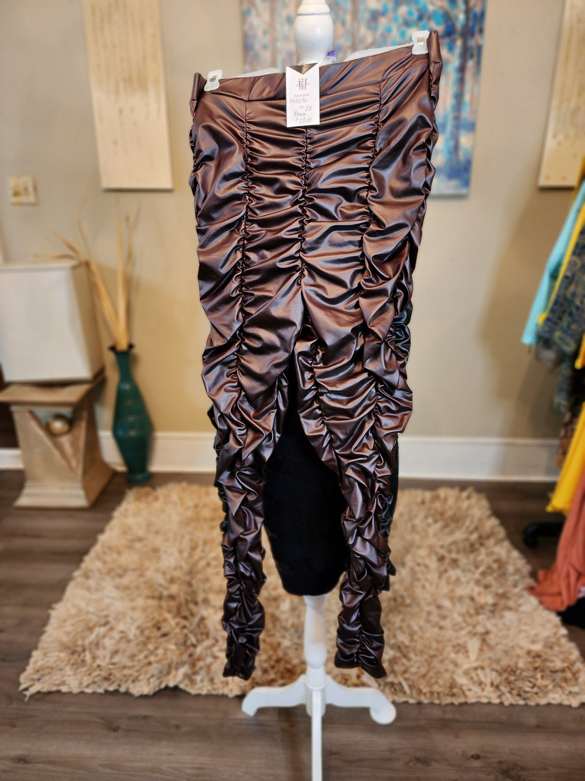 Swank A Posh Ruched Faux Leather Leggings