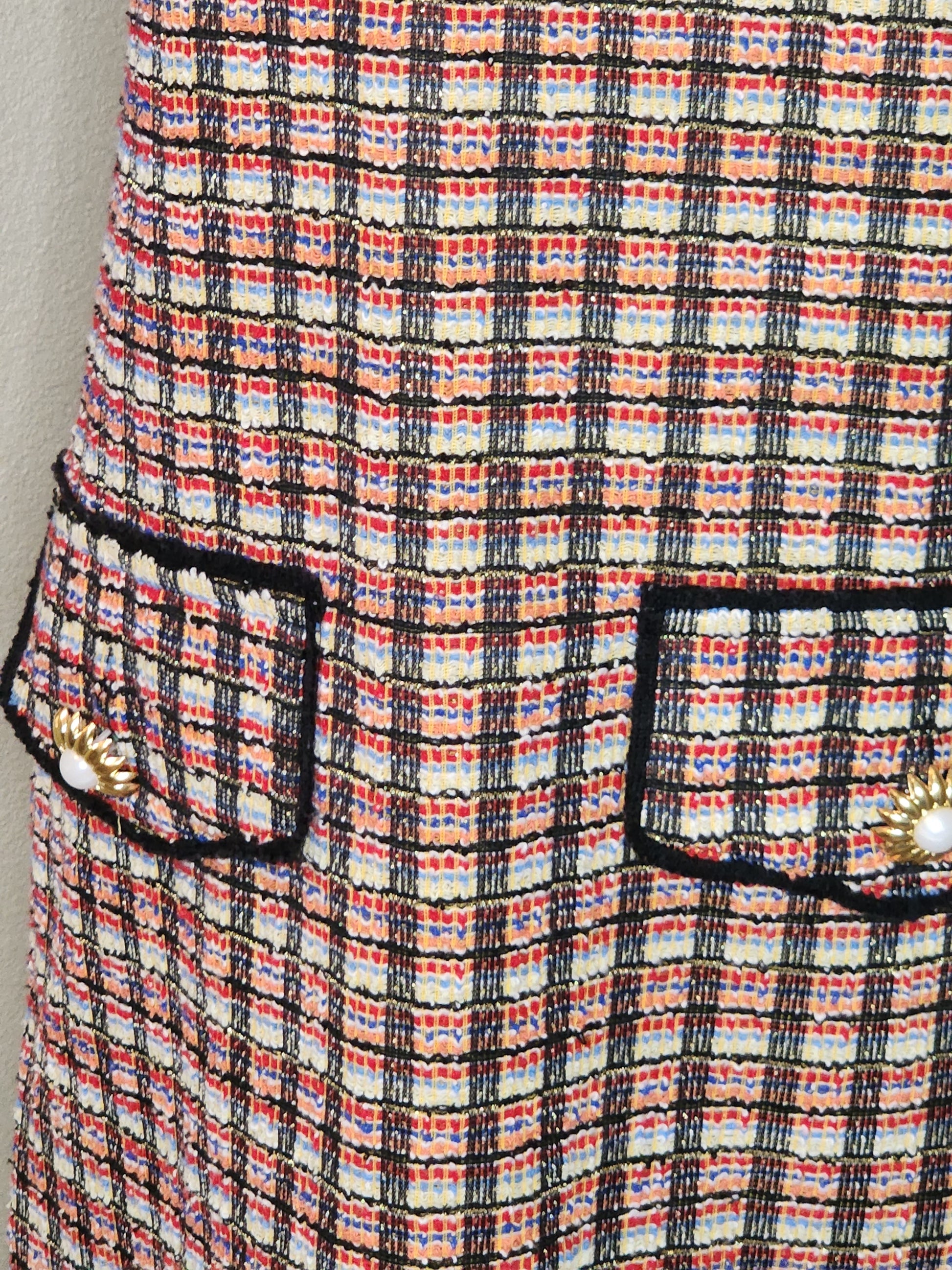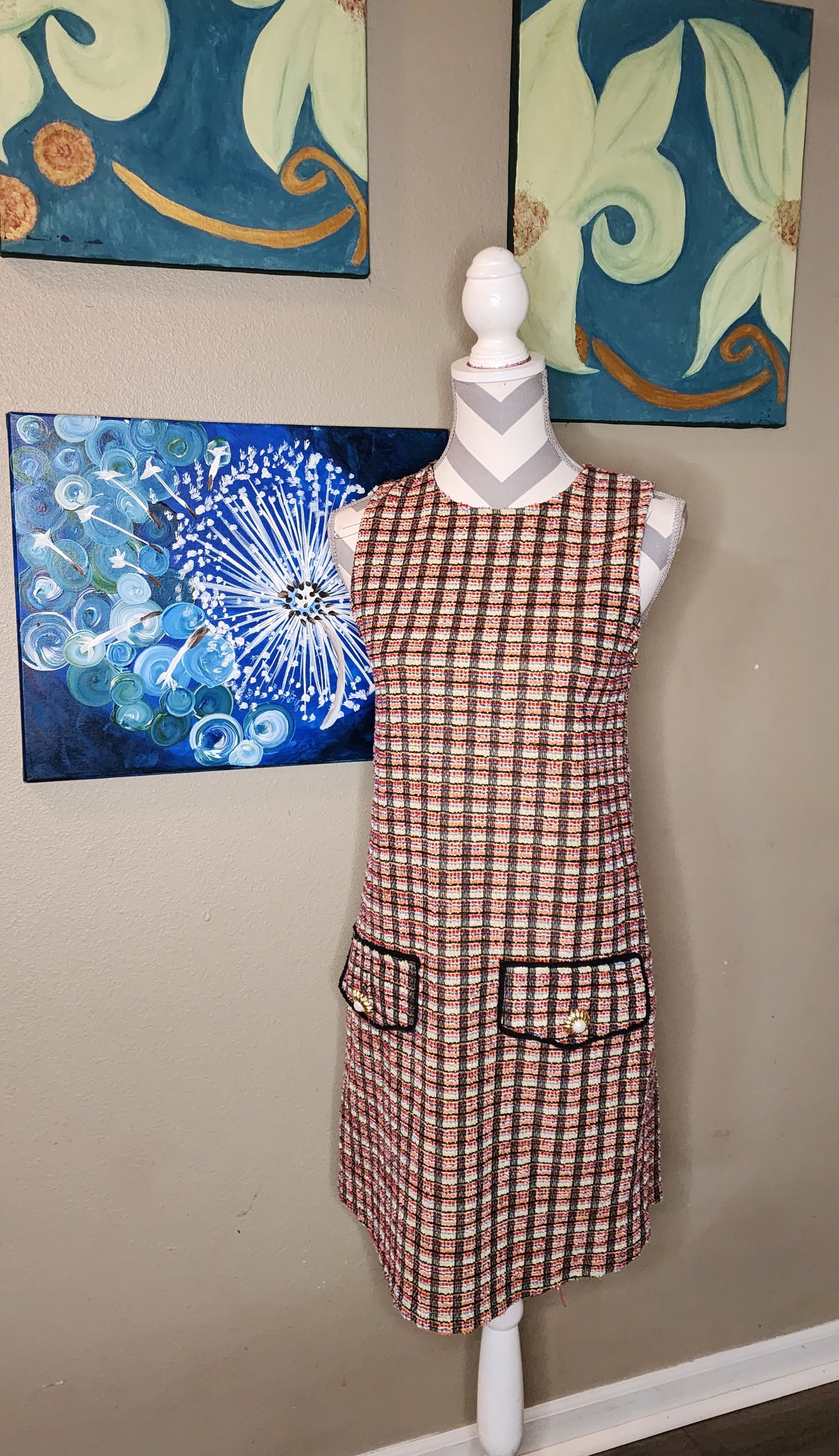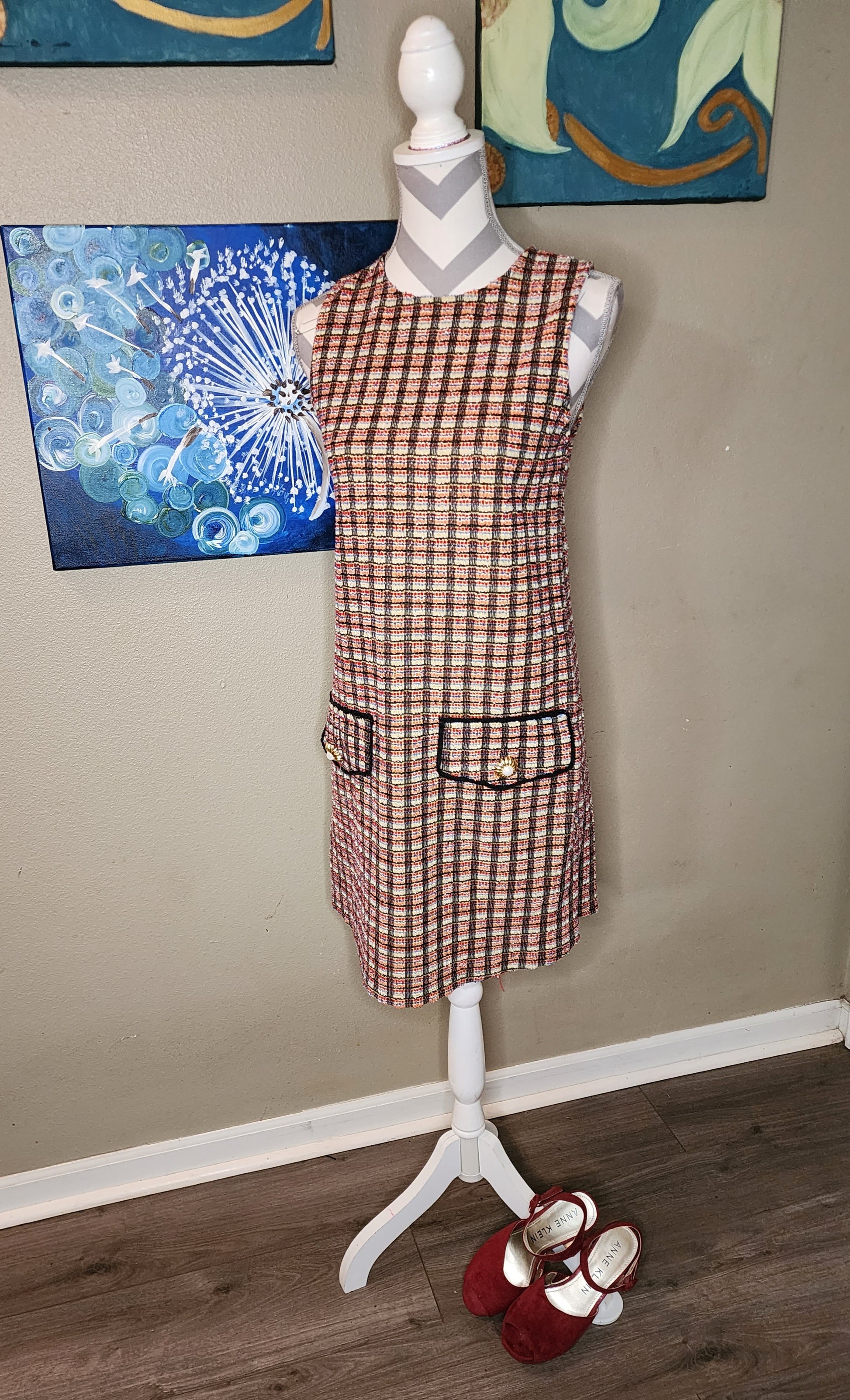 Zara Basic Plaid Sheath Dress with Pearl and Gold Buttons